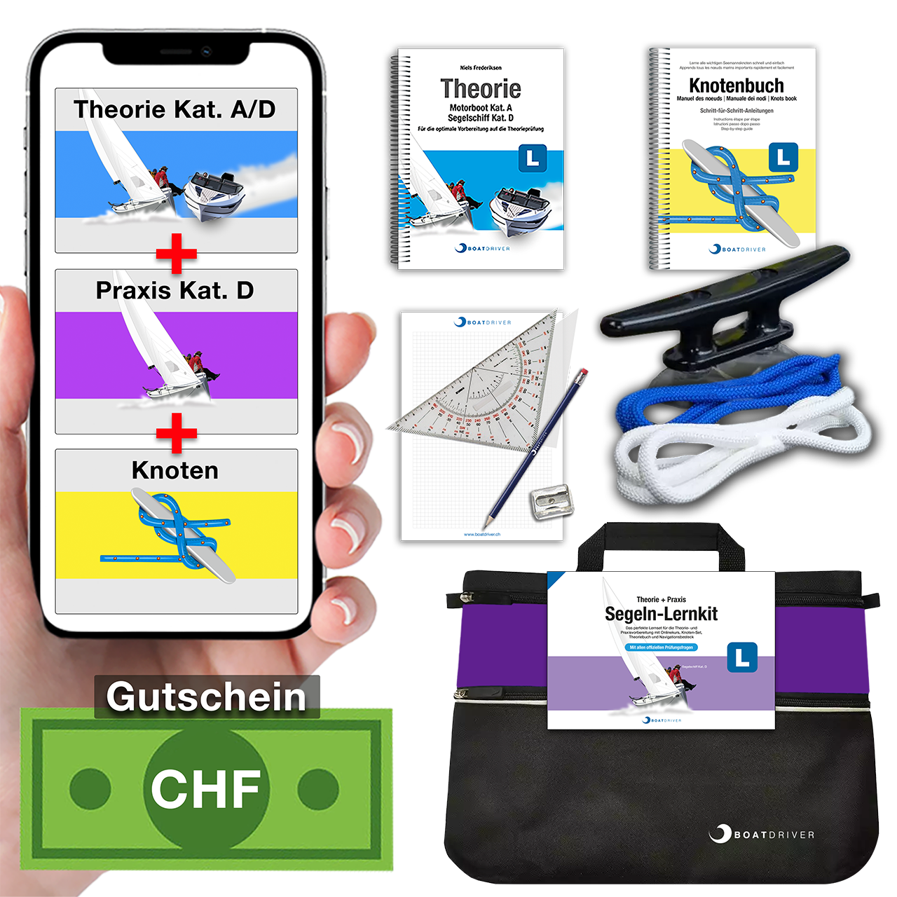 • Mit Prüfungsmanöver• Tipps rund ums Segeln• Ideal zum Fahrstunden sparen • 12 Monate uneingeschränkten Zugang, danach kann der Praxisstoff immer noch repetiert werdenEinzelpreis CHF 79.90