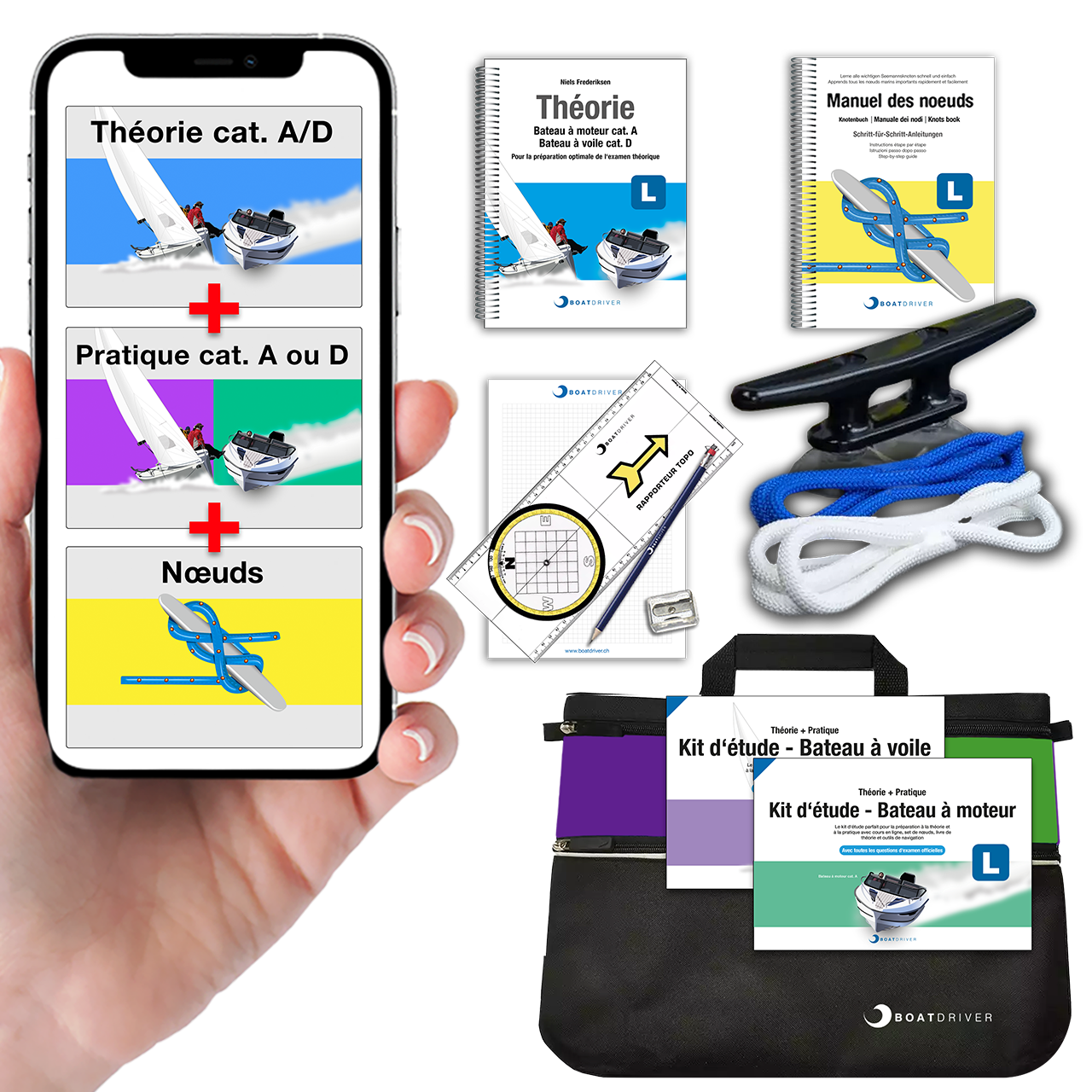 Tout pour une préparation rapide et efficace à l'examen théorique et apprends les nœuds dès maintenant, avant même la leçon pratique !